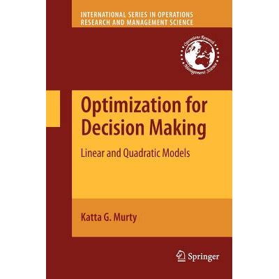 Read Online Optimization for Decision Making Linear and Quadratic Models Epub online is a convenient and frugal way to read Optimization for Decision Making Linear and Quadratic Models you love right from the comfort of your own home. Yes, there sites where you can get Epub "for free" but the ones listed below are clean from viruses and completely legal to use.